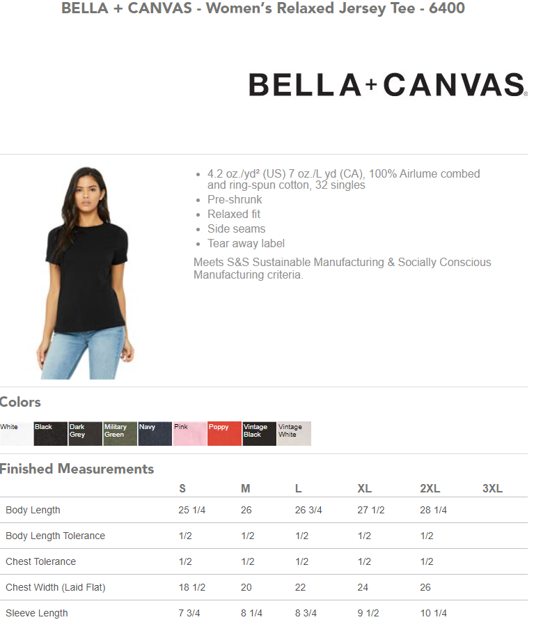 Size Charts included below for each style